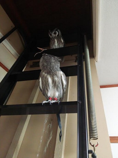 いつもは、龍空ちゃんが天井近くのポール、虎鉄がひどいときは床、がんばってスピーカーの上という構図でしたが、最近、龍空ちゃんのポールより高い、はしごの一番上の段までのぼるのがお気に入りです。