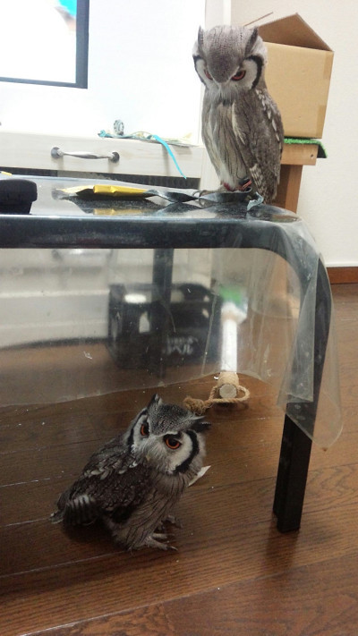 常に一緒に過ごして1年半・・お互いどう思っているんでしょうかね~?フクロウ同士、顔の認識はあるんでしょうか。例えばすり替えたりしたら気付くかな~。